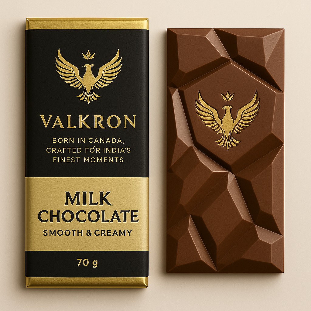 Valkron Chocolate began with a simple belief: chocolate should be more than sweet — it should be an experience of luxury. Created to blend Canadian craftsmanship with India’s culture of celebration, Valkron is built on the promise of indulgence, elegance, and timeless taste. Every bar is designed not just to be eaten, but to be remembered.